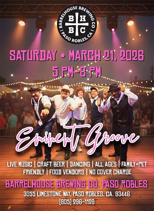 03/21/2026: Eminent Groove perform at Barrelhouse Brewing, Paso Robles ( 5-8PM )... more »