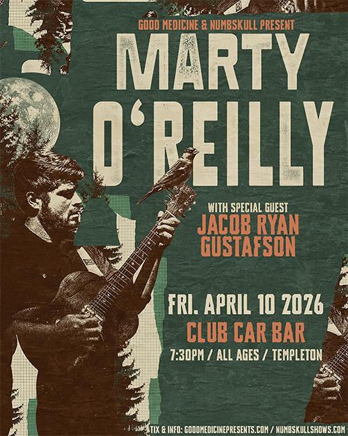 04/10/2026: Marty O'Reilly performs at Club Car Bar, Templeton ( All Ages )... more »
