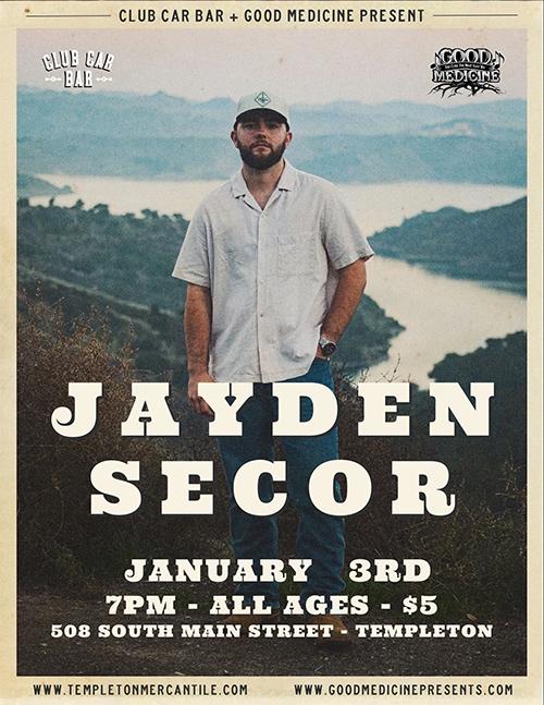 Jaden Secor performs at Club Car Bar, Templeton ( All Ages )