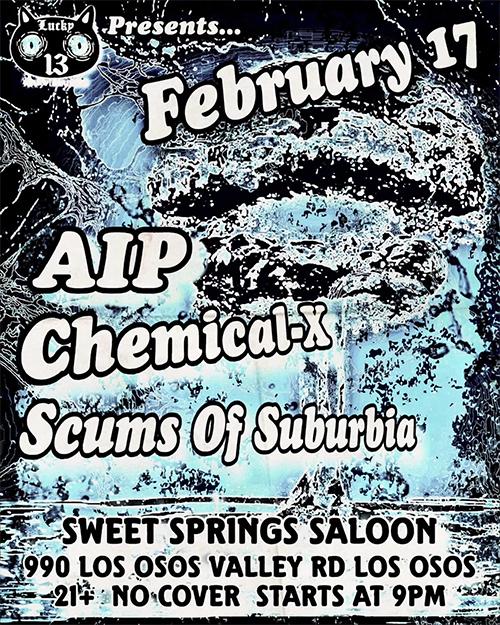 AIP, Chemical X, Scums of Suburbia perform at Sweet Springs Saloon, Los Osos