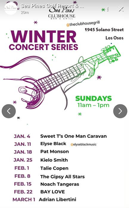 Adrian Libertini performs at Winter Concert Series at Sea Pines Clubhouse, Los Osos ( 11AM-1PM )