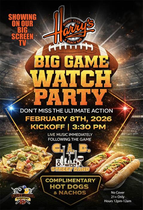 Super Bowl Watch Party at Harrys Night Club and Beach Bar, Pismo Beach