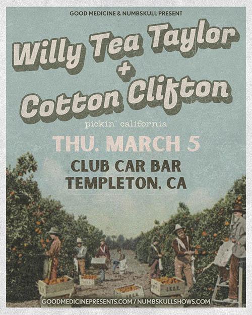 Willy Tea Taylor, Cotton Clifton perform at Club Car Bar, Templeton ( All Ages )