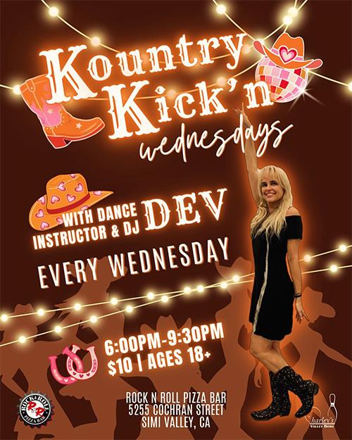 Kountry Kick n Wednesdays ( with Dance Instructor and DJ Dev, ) Rock N Roll Pizza Bar, Simi Valley