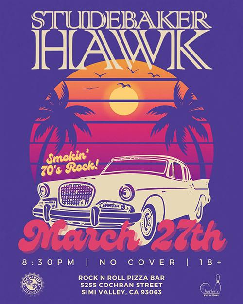 Studebaker Hawk ( 70s Rock ) perform at Rock and Roll Pizza at Harleys Valley Bowl, Simi Valley ( 18 + FREE SHOW )