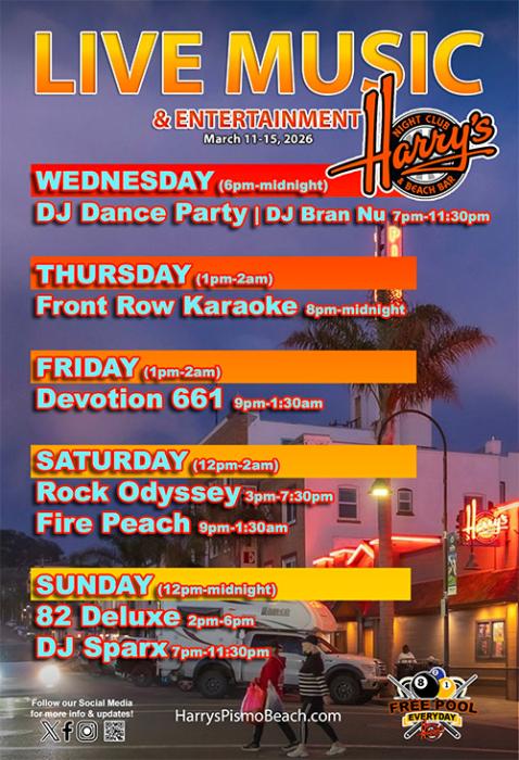 82 Deluxe ( 2-6:00PM ), DJ Sparx ( 7-11:30PM ) perform at Harrys Nightclub and Beach Bar, Pismo Beach