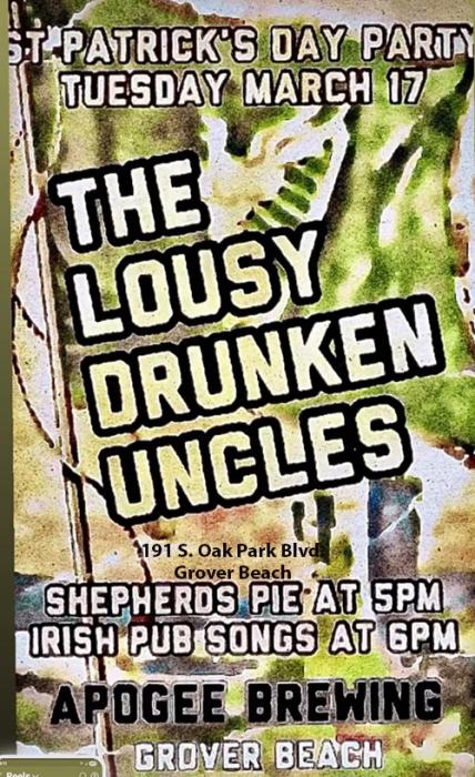 The Lousy Drunken Uncles ( Irish Pub Songs ) perform at Apogee Brewing, Grover Beach ( 6PM )