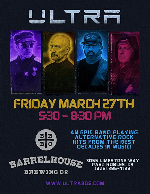 ULTRA ( Alt., Pop, Rock ) perform at Barrelhouse Brewing Co., Paso Robles