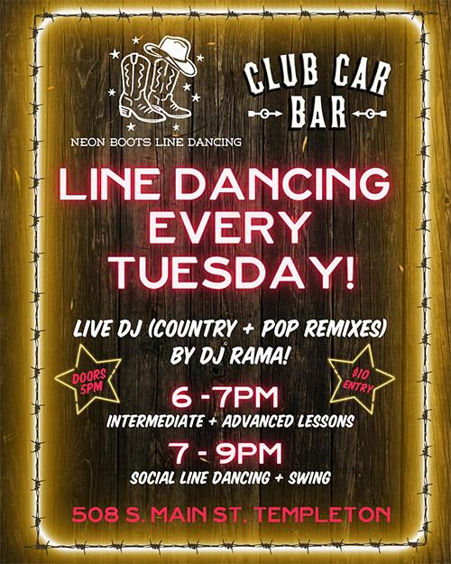 Neon Boots Line Dancing with DJ Rama, Club Car Bar, Templeton
