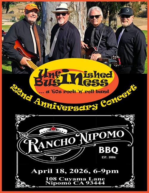 Unfinished Business perform at Rancho Nipomo BBQ, Nipomo ( 6-9PM )