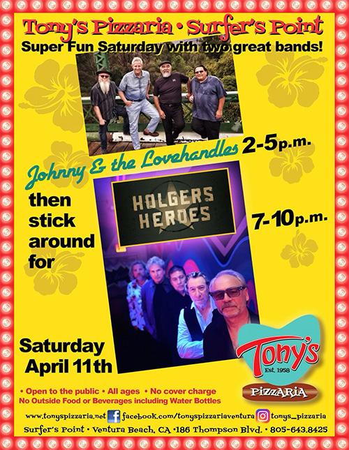 Johnny and The Lovehandles, ( 2-5PM ) Holgers Heroes ( 7-10PM ) perform at Tonys Pizzaria, Ventura