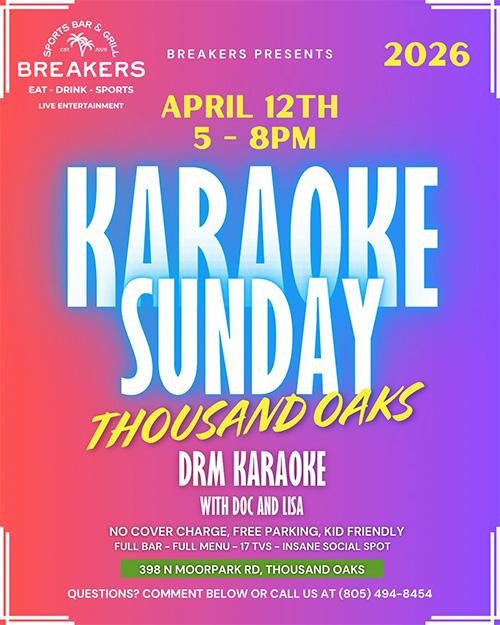 Karaoke Sunday at Breakers Sports Bar and Grill , Thousand Oaks ( 5-8PM )