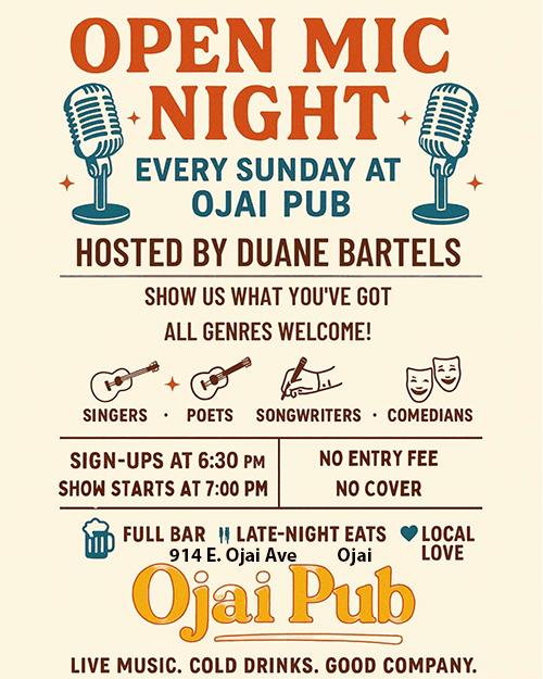 Open Mic Night ( Singers, Poets, Songwriters, Comedians ) at Ojai Pub