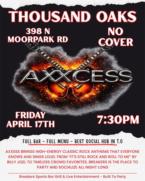 Axxcess Live ( Classic Rock Anthems ) perform at Breakers Sports Bar and Grill, Thousand Oaks